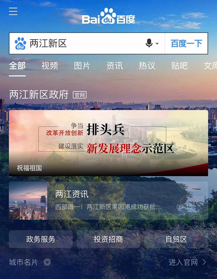 恭喜兩江新區(qū)和渝中區(qū)百度城市名片于2019年9月15日正式上線!